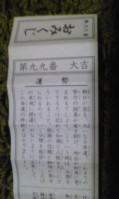 もうひとつそういえば、二月までが前厄でそこから本厄らしいです。おみくじで大吉をひいたし厄払いのお守りも買ったので、本厄は大丈夫そうだけど、前厄が恐い。