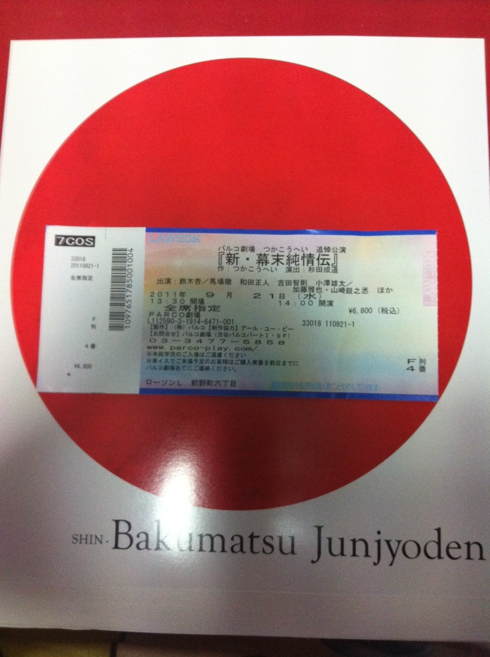 今日(正確には昨日ですが…)は待ちに待った、舞台「新・幕末純情伝」を観る日!