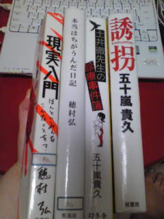 またまた穂村弘の『本当はちがうんだ日記』『現実入門 ほんとにみんなこんなことを?』と、五十嵐貴久の『土井徹先生の診療事件簿』『誘拐』の4冊。
